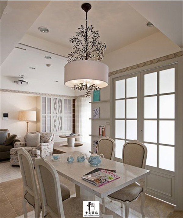 小户型在灯饰的选择上也应遵循简单为上的原则,因此吸顶式的灯饰非常合适的,当然一些非常规材料的吊灯也很吸引人,注意吊灯的长度不应过长,造成空间的局促感。