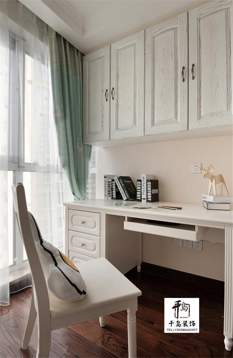 次卧是女儿的房间,阳台的位置特意摆放了书桌作为孩子的学习场所,也很好的分配了房子的空间。