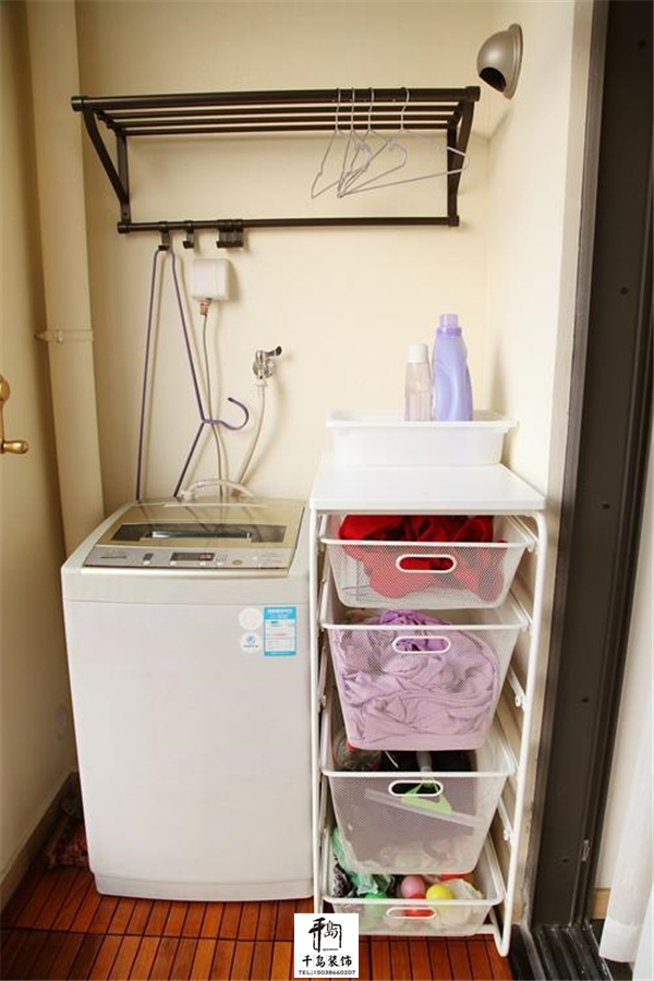 阳台挂绿萝对面就是洗衣服的地方,这个位置实墙没有栏杆,很有安全感,也比较隐蔽,在客厅坐着也不容易看到这里。黑色杆子那之前本来想做置物架,后来用起来才发现这个挂杆比置物架方便,挂衣架和内衣在这里很隐蔽,宜家的那个脏衣篮特别好用。卧室是老公装的,太丑没法看就不放了。其实很多小户型的房子户型结构都差不多,希望我的装修能帮到你。