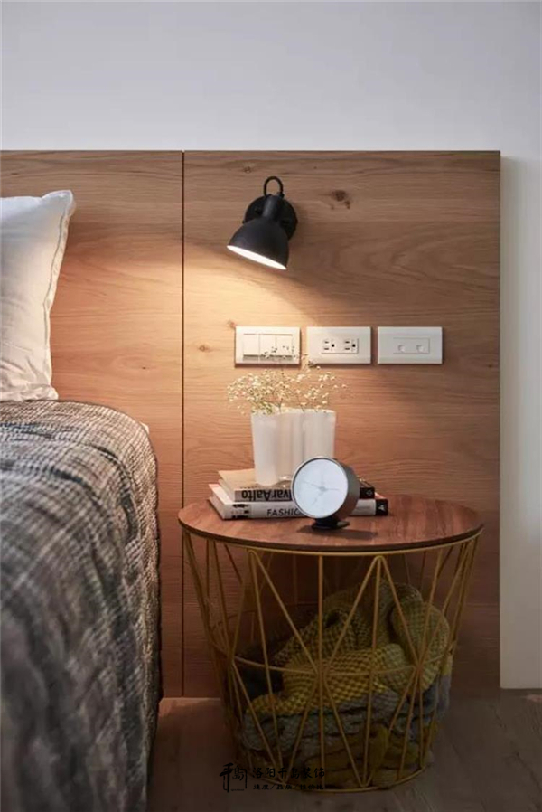 这个床头柜也是很别致,是一个收纳筐,有一种混搭的时尚感。