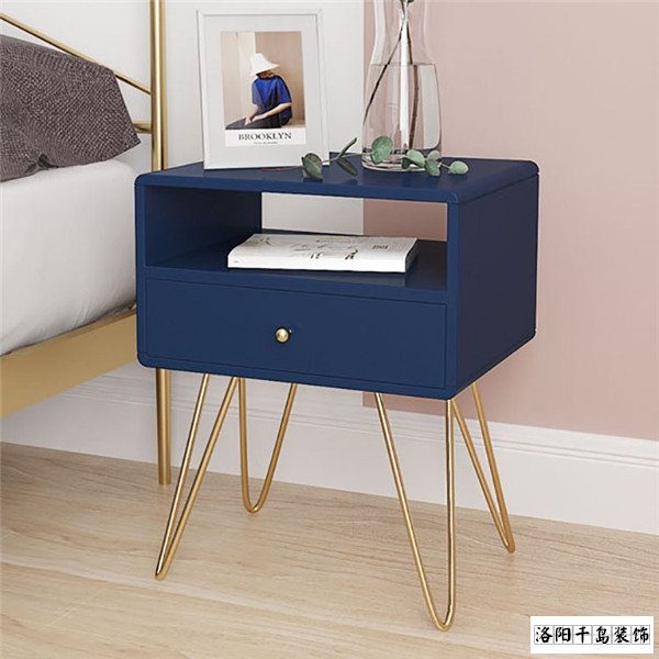 近些年来流行的床头柜配色设计,如:帝王蓝、宝石红、孔雀绿、夕阳粉等等多种ins风色系款式选择,搭配上极具线条感设计的铁艺金色柜脚,优雅、轻奢的北欧风呼之欲出!摆在卧室不要太好看了。