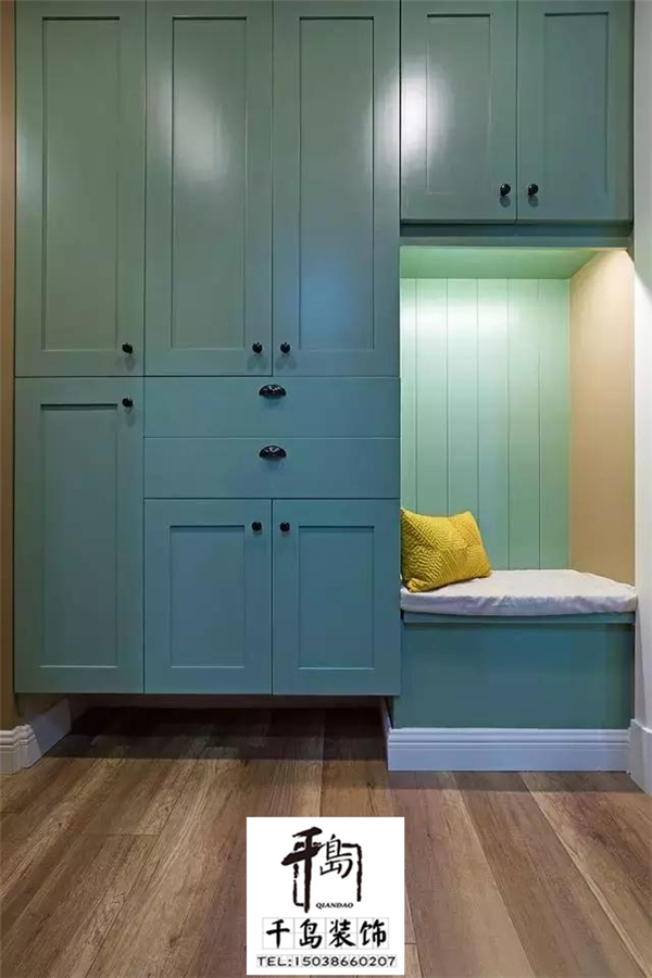 要是底部留空间不够,把换鞋凳底下设成两层隔板用来放鞋也不错。