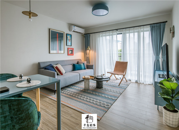 黑白灰色调一直是北欧风的主色调,在客厅中除了主色调之外,还可再加上一些清新的黄色或者蓝色,中和一下色调的单一,或者再加上一些大型绿植或者装饰画,格调也是很足的。